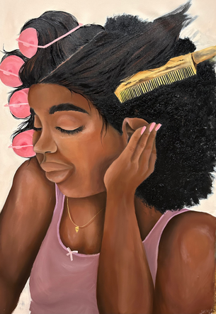 Welcome to Edith's art portfolio, where vibrant acrylic and oil paintings come to life. Each piece showcases her mastery of vivid colors and intricate details, reflecting deep symbolism rooted in her Sierra Leonean/Black culture. Inspired by iconic artists like Basquiat and Carrie Mae Weems, Edith boldly challenges conventional Eurocentric standards while highlighting the African American experience. Through her work, she fosters dialogue, celebrates joy, and represents the richness of the Black community in the arts.